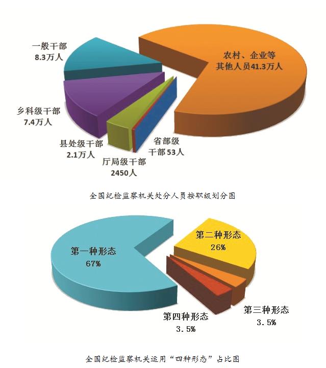 2022年,全國紀檢監(jiān)察機關運用“四種形態(tài)”批評教育幫助和處理共183.8萬人次。其中,運用第一種形態(tài)批評教育幫助123.2萬人次,占總人次的67%;運用第二種形態(tài)處理47.8萬人次,占26%;運用第三種形態(tài)處理6.4萬人次,占3.5%;運用第四種形態(tài)處理6.4萬人次,占3.5%。