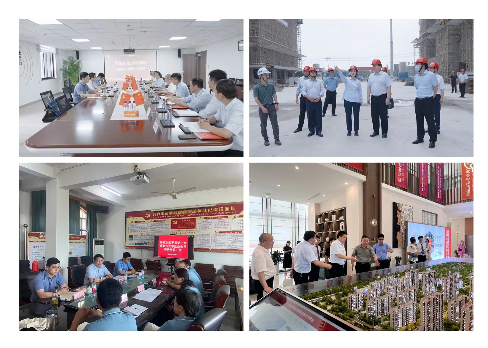 在霍邱項目公司,羅太忠實地查看了項目二期建設(shè)、產(chǎn)品樣板以及安全生產(chǎn)等情況;在六安市鹽業(yè)公司,羅太忠查看了鹽品倉庫,了解食鹽儲備任務(wù)落實情況;隨后在兩地分別召開座談會,聽取黨建和生產(chǎn)經(jīng)營工作匯報。與領(lǐng)導(dǎo)班子、部門負責(zé)人、黨員和一線員工代表就黨建與生產(chǎn)經(jīng)營融合,企業(yè)下一步發(fā)展思路以及需要集團公司協(xié)調(diào)解決的問題進行深入交流。