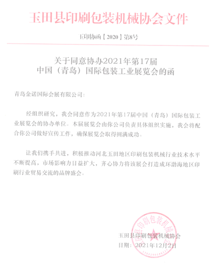 河北省作為國內(nèi)印刷包裝機(jī)械生產(chǎn)大省,產(chǎn)業(yè)集群密集,其中玉田縣、東光縣匯聚上千家印機(jī)設(shè)備和瓦楞紙箱設(shè)備企業(yè),青島包裝展首次邀請(qǐng)玉田縣印刷包裝機(jī)械協(xié)會(huì)作為大會(huì)協(xié)辦單位,并與玉田印機(jī)網(wǎng)達(dá)成戰(zhàn)略合作關(guān)系,積極為當(dāng)?shù)仄髽I(yè)拓寬銷售渠道,帶來更多商機(jī)。