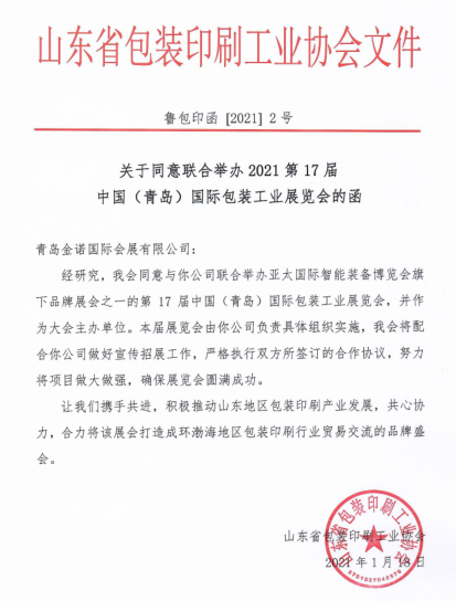 2021年青島包裝展凝心聚力,破浪前行!我們將延續(xù)“專業(yè)、高效”的辦展理念,立足山東省經(jīng)濟(jì)沃土,繼續(xù)邀請(qǐng)山東省包裝印刷工業(yè)協(xié)會(huì)作為大會(huì)主辦單位,合力招商,共同推動(dòng)山東地區(qū)包裝印刷產(chǎn)業(yè)健康發(fā)展。