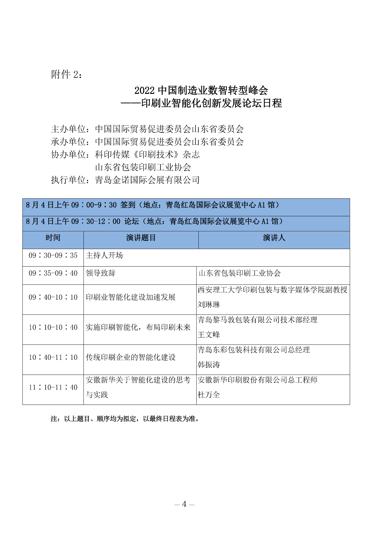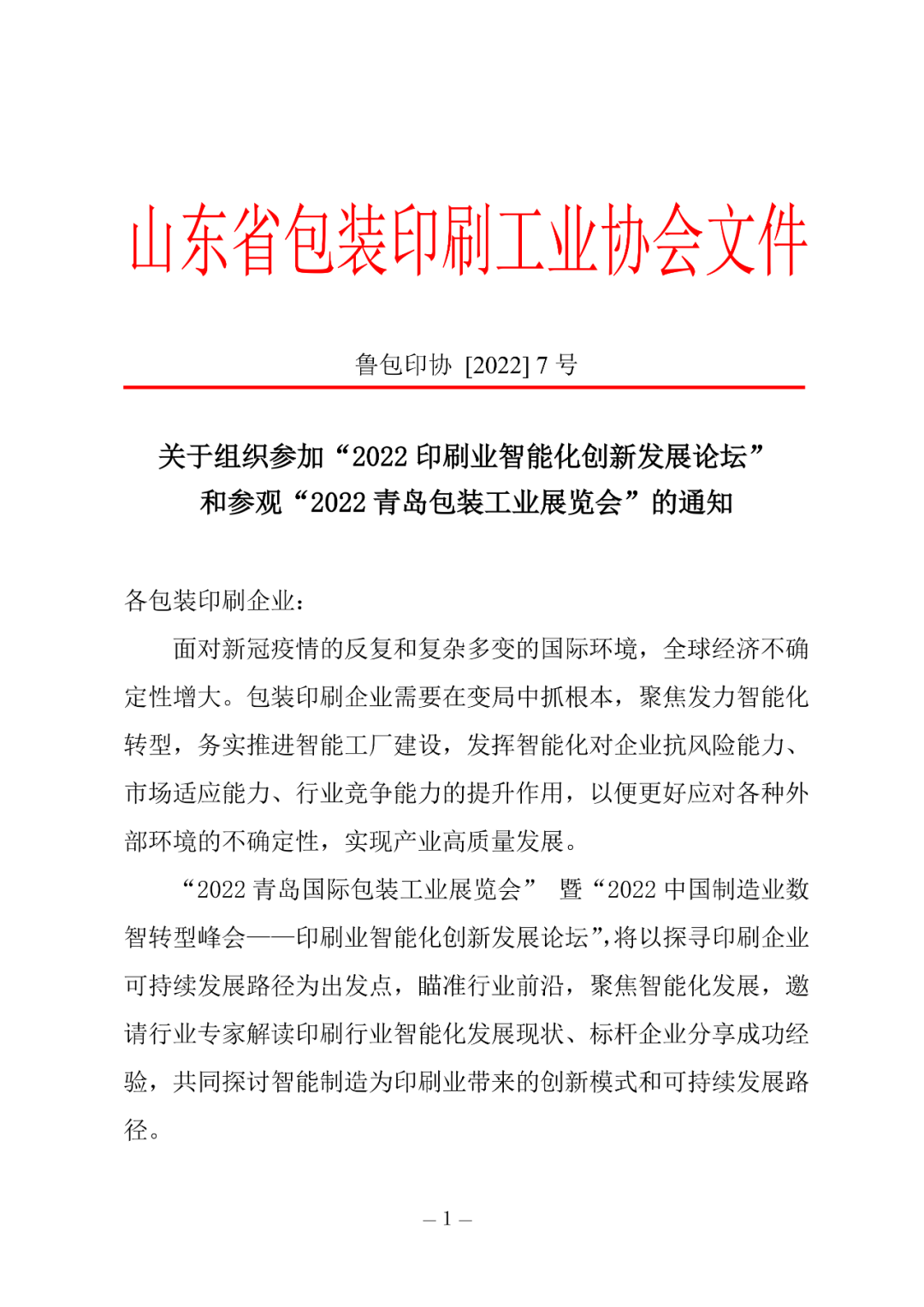關于組織參加“2022印刷業(yè)智能化創(chuàng)新發(fā)展論壇”和參觀“ 2022青島包裝工業(yè)展覽會”的通知