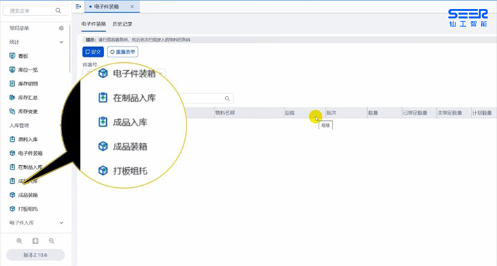 收貨之后下一個環(huán)節(jié)是裝箱或組托,即把貨物放到存儲用的容器中,例如料箱、托盤、棧板,MWMS 可以支持配置多種容器綁定功能,方便存儲和后續(xù)自動化作業(yè)。